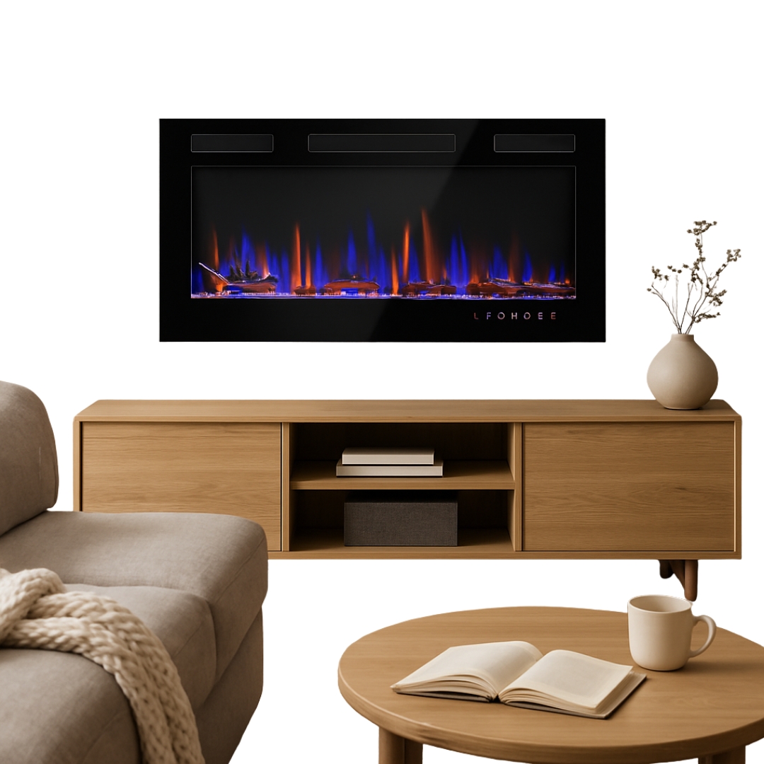 Trendowin Electric Fireplace 40″ Wall/Recessed Flame Color & Heater